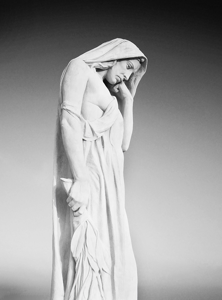 The weeping figure is facing the Douai Plain, and is gazing downward toward the tomb of a fallen soldier. It is clearly reminiscent of traditional images of the Virgin Mary in mourning, and is possibly the most emotionally moving aspect of the memorial.